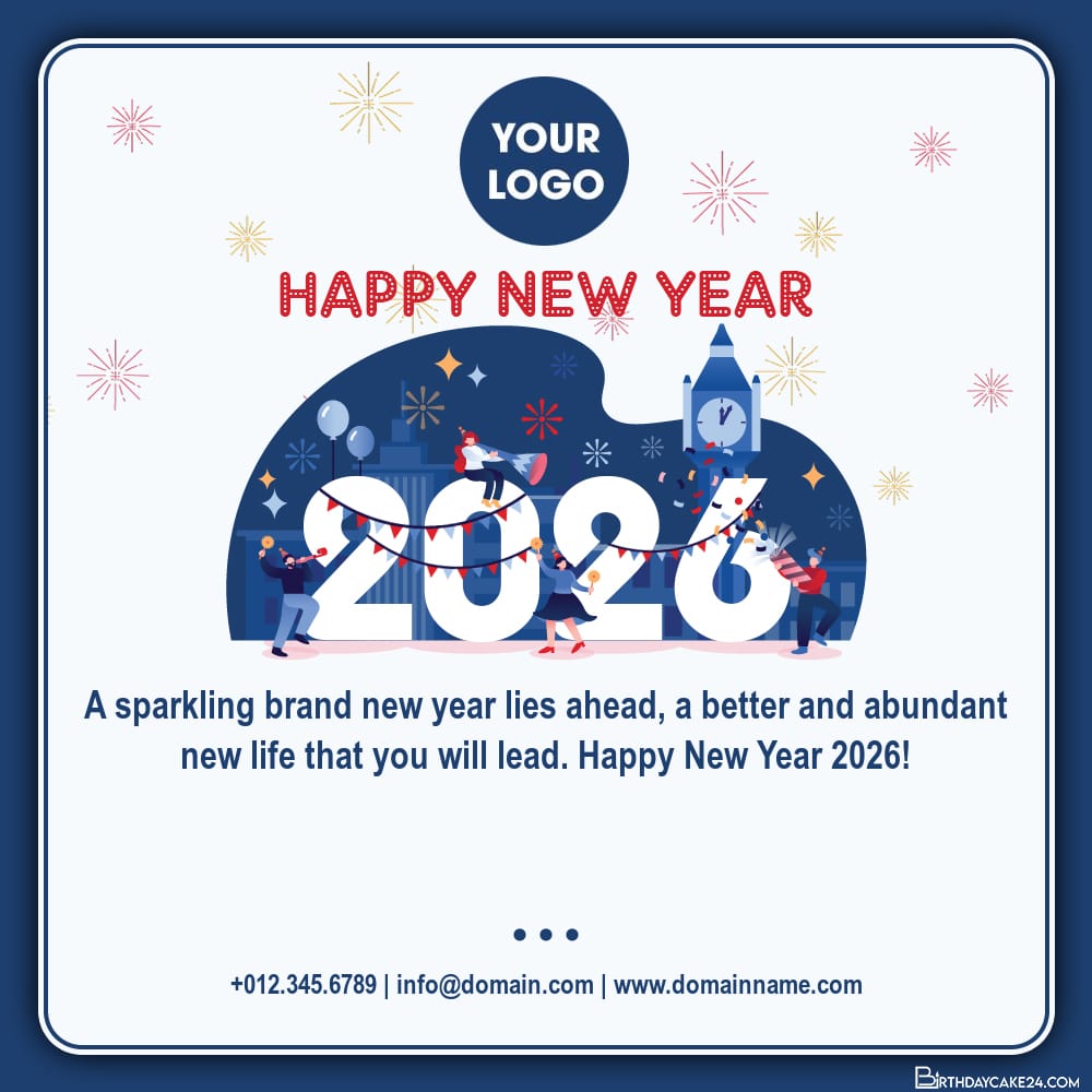 Are you looking for a place to create 2026 New Year greeting cards with logo? Right here has everything you need to impress your customers, partners, employees. Customize logo on happy new year 2026 image with wishes name. Customize the content and logo on the professional new year 2026 greeting card and send it to everyone on New Year's Eve. Professional happy new year 2026 images created and shared online in seconds.