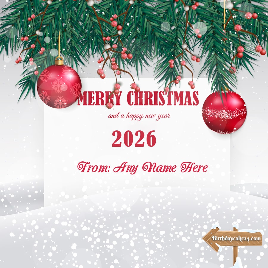 Merry Christmas & Happy New Year 2026 Card With Name Edit
