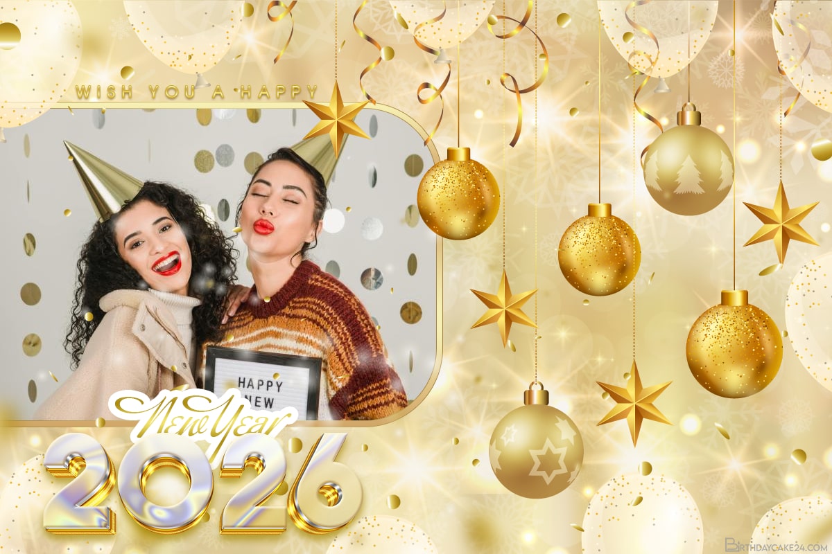 Sparkling Happy New Year 2026 Wishes Cards With Photo Frames